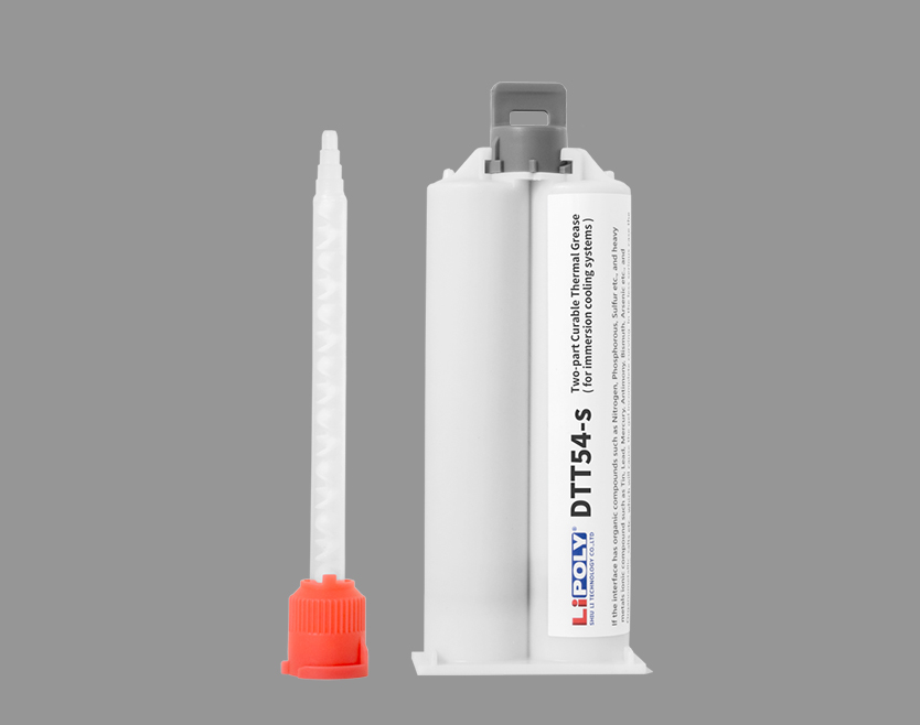 固化导热膏DTT54-s不同于传统散热膏,涂布后可加热固化,形成结构稳定且高导热的介面。 液态时填缝性优异,便于组装; 固化后能承受长时间液流与反复热循环冲击,兼具高导热性、浸没液相容性(不溶解、不膨胀、不析出污染物)及长期高温下的稳定可靠性,特别适合高负载AI运算芯片、电动车高功率模组及各类热管理应用。