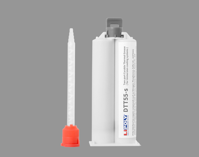 固化导热膏DTT55-s不同于传统散热膏,涂布后可加热固化,形成结构稳定且高导热的介面。 液态时填缝性优异,便于组装; 固化后能承受长时间液流与反复热循环冲击,兼具高导热性、浸没液相容性(不溶解、不膨胀、不析出污染物)及长期高温下的稳定可靠性,特别适合高负载AI运算芯片、电动车高功率模组及各类热管理应用。
